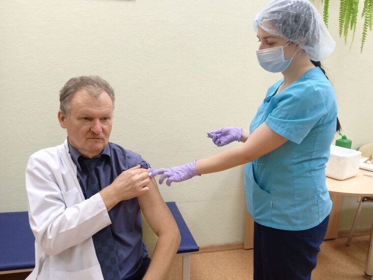 Своим личным примером важность вакцинации демонстрирует заместитель главного врача по медицинской части Владимир Шиндеров: