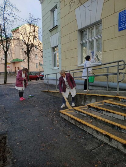 Медики, ненадолго отложив белые халаты, вооружились граблями, метлами и садовым инвентарём, чтобы навести идеальный порядок на прилегающей территории.