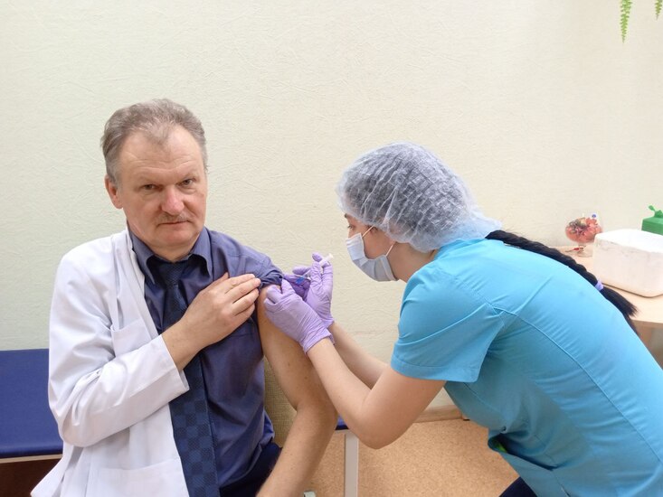 Своим личным примером важность вакцинации демонстрирует заместитель главного врача по медицинской части Владимир Шиндеров: