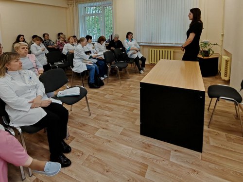 🌀Перед сотрудниками центра выступила руководитель центра здоровья молодежи «Феникс» Ольга Ходань.