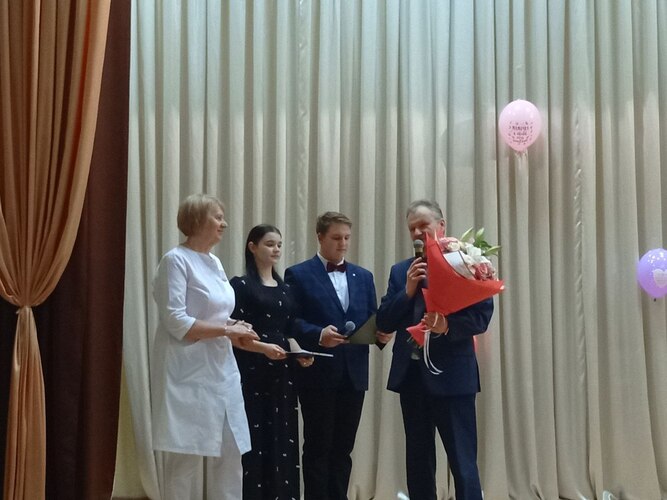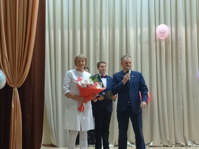 ✨ По традиции, цветы 💐 и бурные аплодисменты 👏 нашему главному врачу и его заместителю. Ваше руководство — это тоже большая родительская забота о всём нашем коллективе.