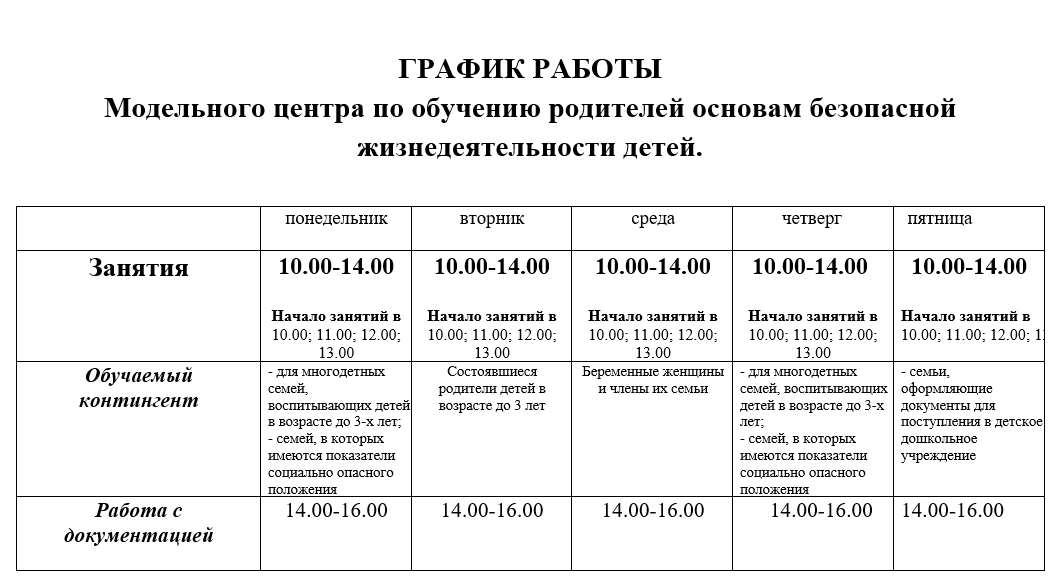 г.Витебск, ул. Чкалова 14 В, каб 403 функционирует Модельный центр по обучению родителей основам безопасной жизнедеятельности детей